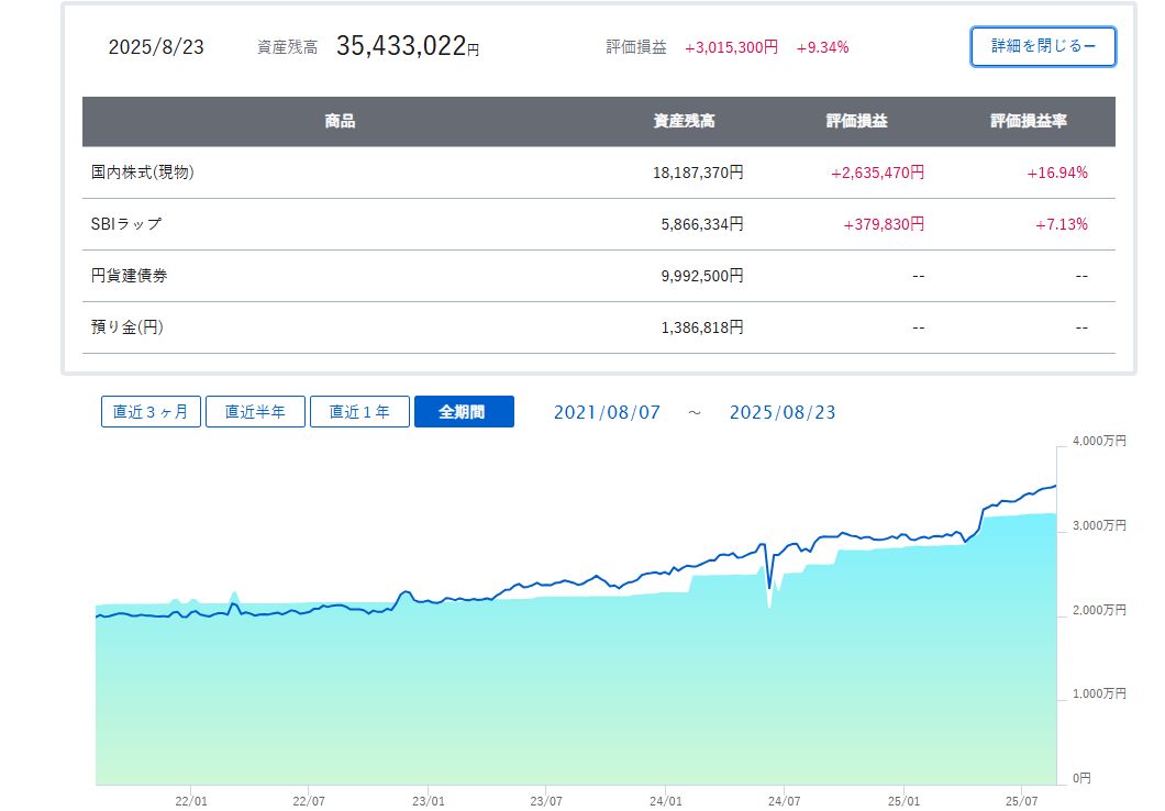 資産総額が7,000万円を超えたという数字として見れば一つの節目に到達したように感じるが、実際にその金額を確認した瞬間は、達成感というよりも「ここまで来たのか」という静かな驚きの方が大きかった。2025年8月から約5か月で、資産は約740万円増加している。もちろん、その大半は評価益であり、確定した利益ではない。それでも、これまで積み上げてきた結果が数字として表れていることには、素直に感慨を覚えた。