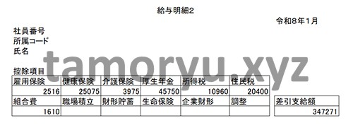 2026年1月の給料は、基本給などを含めた支給総額が429,065円、これに残業代28,492円が加わり、額面では合計457,557円となった。控除の内訳を見ると、やはり毎月のように引かれる金額はなかなかのものだと実感する。最終的な手取り額は347,271円で、額面45.7万円に対して約11万円が各種控除として消えていった計算になる。