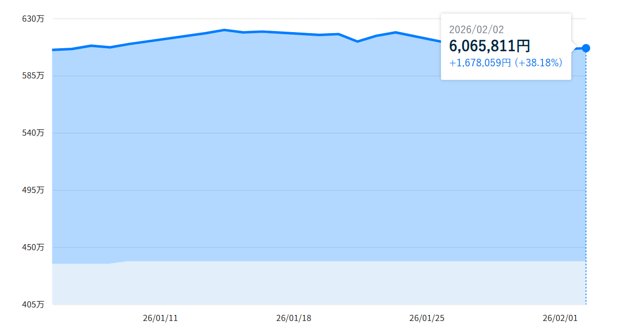 80ヶ月を超えて運用を続けていると、評価益が増える月もあれば減る月もあることは自然な流れとして受け止められるようになってきた。むしろ重要なのは単月の増減ではなく、長期で右肩上がりの推移を維持できているかどうかだと感じている。今回のような小幅な調整も、長期運用の中では必要な一場面なのだろう。